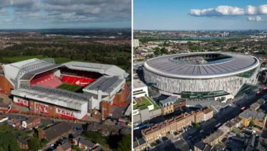 The 50 best stadiums in Britain have been ranked, with Liverpool’s Anfield placed in third.